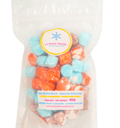 - Mâche pas molo – Nerds : On utilise le même principe mais cette fois en utilisant des saveurs de punch au fruit et de framboise bleue. Celles-ci se marient tellement bien avec les arômes des bonbons lyophilisés nerds clusters rouges et bleus avec lesquels nous les recouvrons. Vous serez surpris de voir comme elles sont bonnes et addictives. Une création originale.