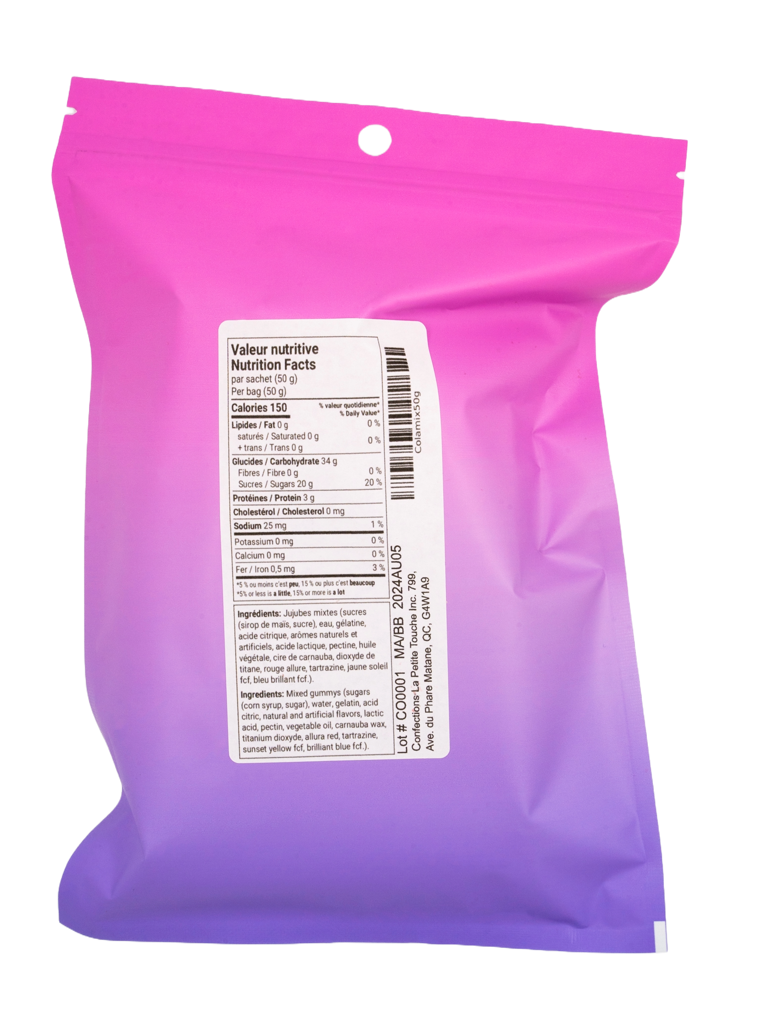 Nos friandises sont manipulées et transformées dans des conditions contrôlées par du personnel qualifié dans notre atelier de confection spécialement aménagé pour répondre aux exigences en matière de sécurité alimentaire. Chaque sac est méticuleusement emballé à la main et est toujours inspecté avant d’être expédié.