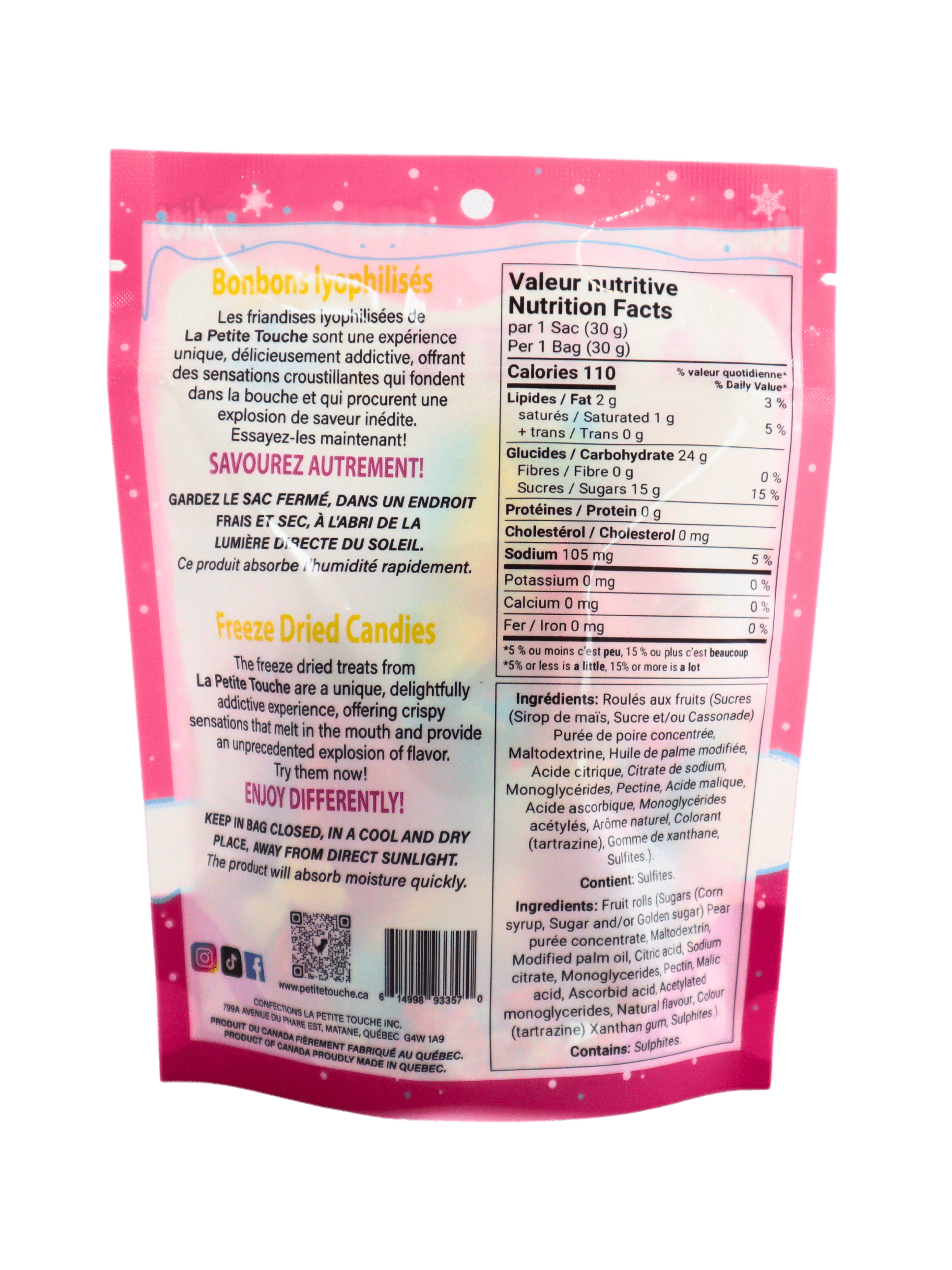 Nos jolis bonbons lyophilisés de forme triangulaire, rendront vos moments de détente encore plus réconfortants et satisfaisants. La forme triangulaire des Frostitos rappelle un boomerang et ça tombe bien parce vous aurez sans doute envie que ce bonbon revienne encore et encore dans votre palais!