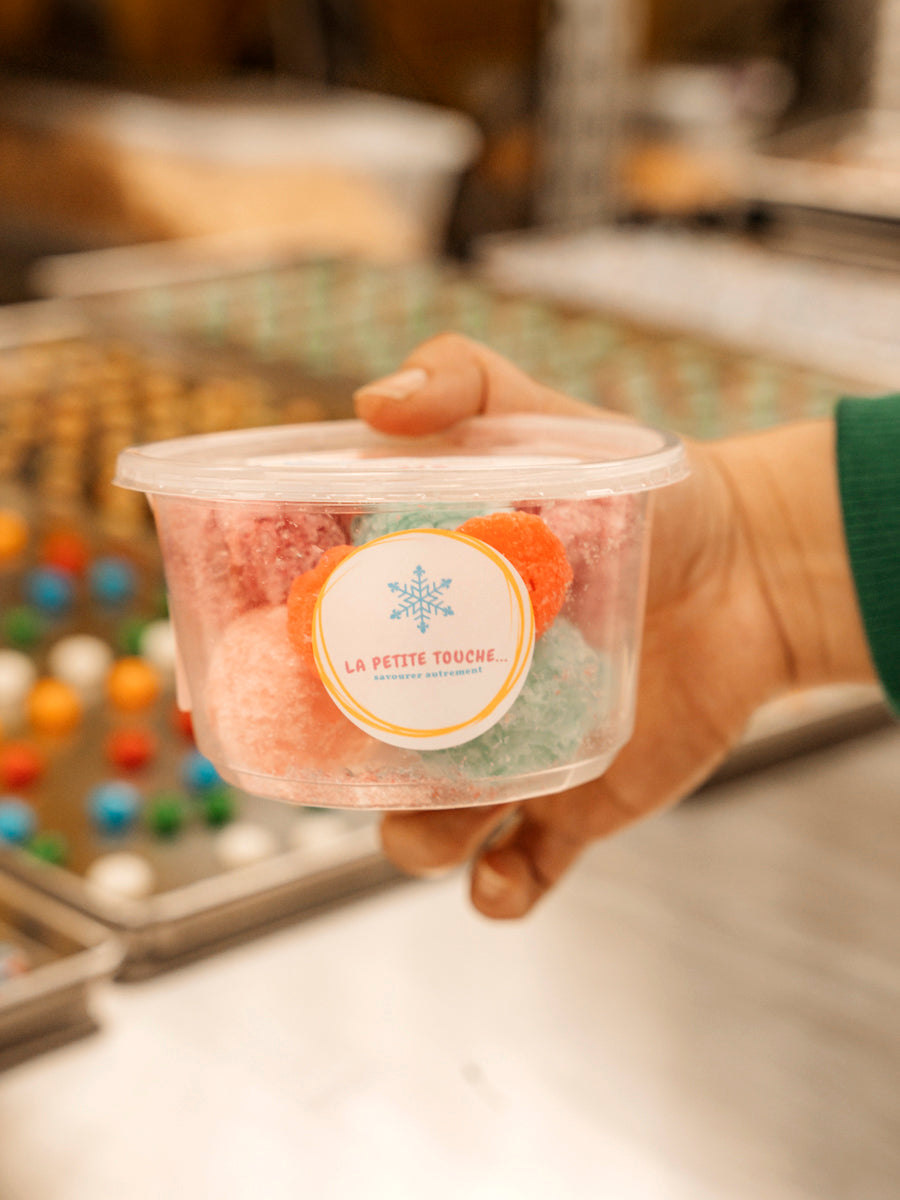 La Petite Touche, c’est l’histoire de deux frères fascinés par la fusion de la science et de la gourmandise. Intrigués par les procédés de conservation des aliments, Dave et Keven s’initient à l’univers de la lyophilisation, ce qui les amène à créer leur propre version revisitée de friandises lyophilisées : une nouvelle tendance gourmande qui gagne en popularité. En février 2023, les frères lancent Confections La Petite Touche, la première compagnie de produits lyophilisés à voir le jour dans l’Est-du-Québec. L’entreprise matanaise est parmi les rares confiseries de bonbons lyophilisés en province.